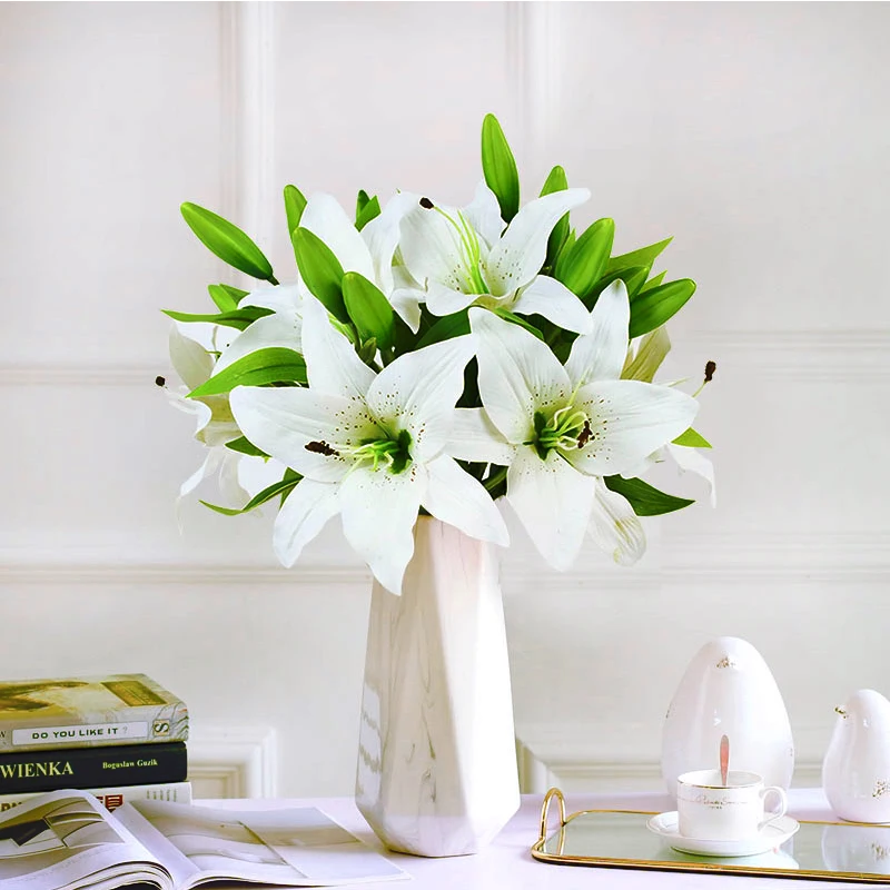 6PCS Artificial Lily Flowers White Real Touch Fake Lily Flower with 3 Heads for Home Wedding Party Shop Decoration vase not Include 3. By popular demand were now selling the White Lily apron made famous by our dearest friend Brenda Gantt. 5 pcs of Calla Lillies with stem.
